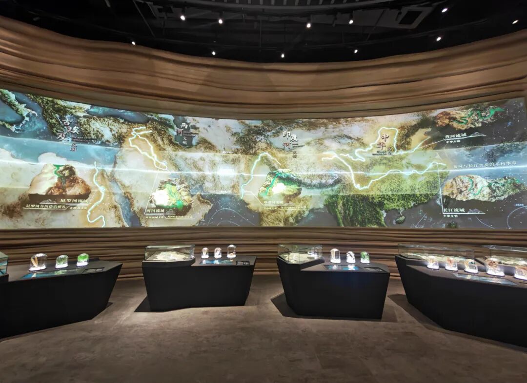 《大河流域:人类文明的摇篮》部分,焦点汇聚于河流与人类文明的紧密联系。巨型立体沙盘展现欧亚大陆的地形地貌,配合沙盘下的检索触摸屏、动态河流流域沙盘、标本展示柜及图文资料,从地理气候条件、地形地貌变迁、物种分布等多个维度,揭示大河如何孕育人类文明、推动文明演进,以及黄河为早期农业和文明发展提供的得天独厚条件。