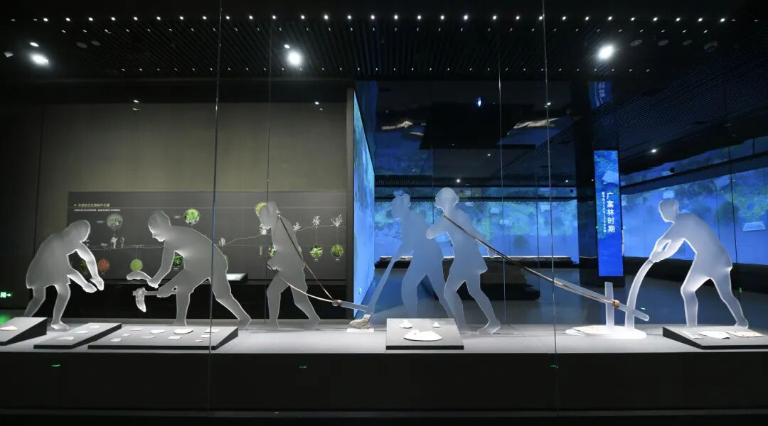 在“水乡”单元,借助丰富的图版和直观的岩芯模型,观众可以清晰地了解到临平地区在万年前至4000年前,古地貌如何从波涛汹涌的海湾、潮滩逐步演变为适宜人类居住的滨海平原。同时,还能深入了解当时温暖湿润的气候条件和丰富多样的生态环境,是如何为早期文明的孕育和发展提供得天独厚的条件。