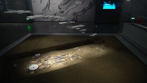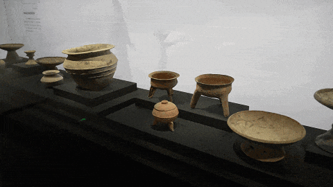 “见证兴废”单元,通过陶器年表、墓地结构和环壕兴衰展示,让观众见证良渚文化的兴衰历程。考古学家根据墓葬出土陶器构建了玉架山的年表,“陶器墙”展示了六个环壕一到四期的完整陶器年表,让观众理解陶器在考古研究中的重要性。通过复原墓地中的下葬顺序和布局结构,以及基于各环壕内墓葬和出土器物年代复原环壕兴废顺序,观众可以直观感受玉架山遗址的发展变化。