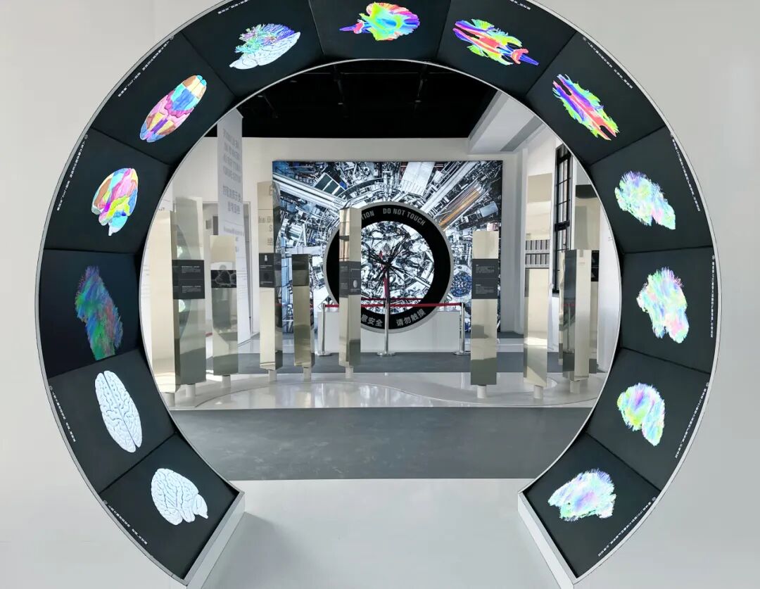 The temporary exhibition hall, themed "From Science—Exploring Truth, Beauty & Innovation," adopts a design approach that blends mirrored surfaces with dynamic lighting. Through moving images that depict brain activity, it symbolizes humanity’s ongoing quest to understand the essence of science.