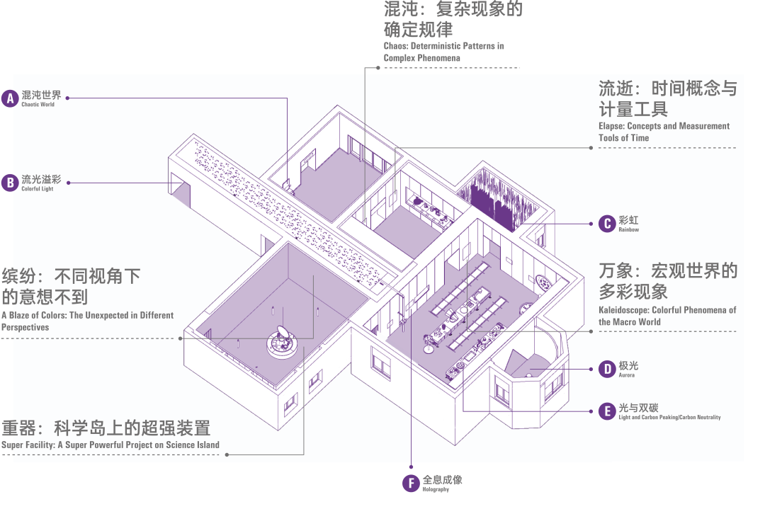 本展厅以未来实验室为空间主题,营造神秘而富有科技感的氛围。我们直接聚焦于现象本身,重点展示自然界中一些具有代表性且特别引人注目的现象,带领大家以全新的科学视角,认识这个异彩纷呈的物质世界,感受世界的复杂性与规律性。今天,我们不妨也尝试像科学家一样,从这缤纷万象中寻找自然留下的线索,探索解决问题的方法。