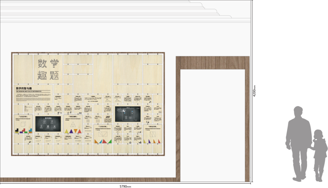 本展厅以“数学课堂”为空间主题,巧妙融入黑板、书桌等元素,灵活运用内嵌式展项和陈列式展示设计,提高展览的流畅度,更深刻地诠释了数学思维的内涵。