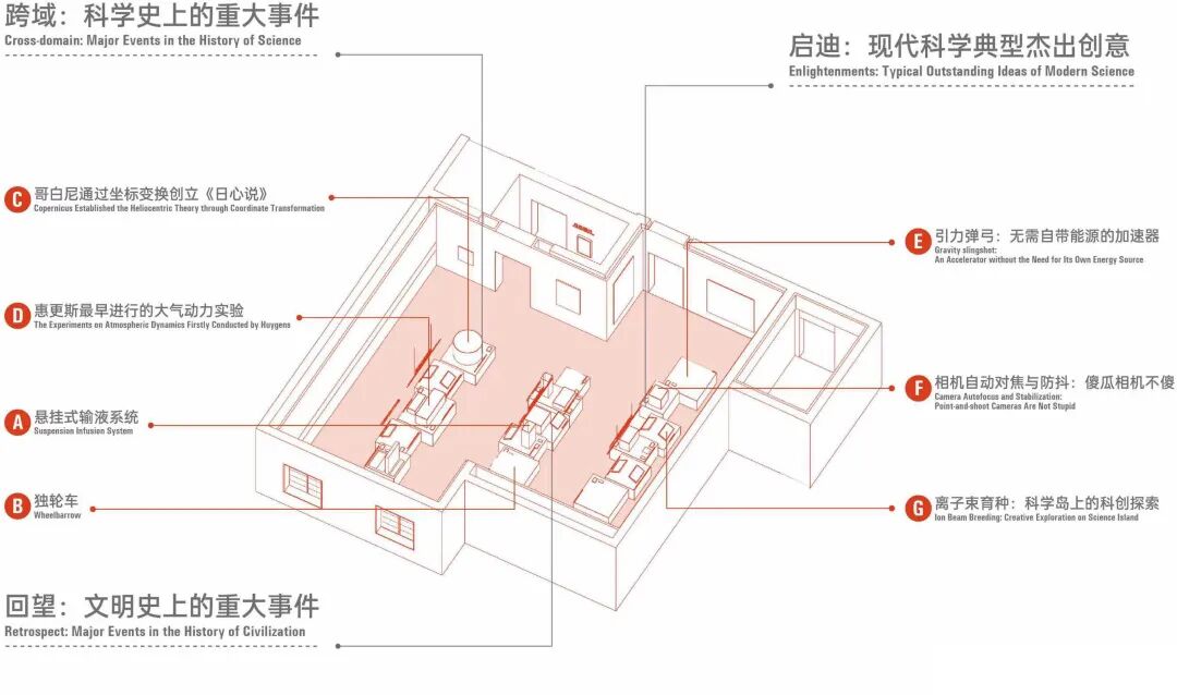 The project is built around the principle that "space is narrative." By crafting immersive spatial experiences, it transforms science from an abstract concept into a tangible and perceptible reality. The exhibition is structured around 6 themed galleries: Science Archive Room, Mathematics Classroom, Vintage Laboratory, Future Laboratory, Inspiration Art Museum, and Spiritual Hall. Each space employs a unique architectural language, using multidimensional visual, tactile, and interactive experiences to narrate the evolution of science, allowing visitors to grasp its essence through immersive engagement.