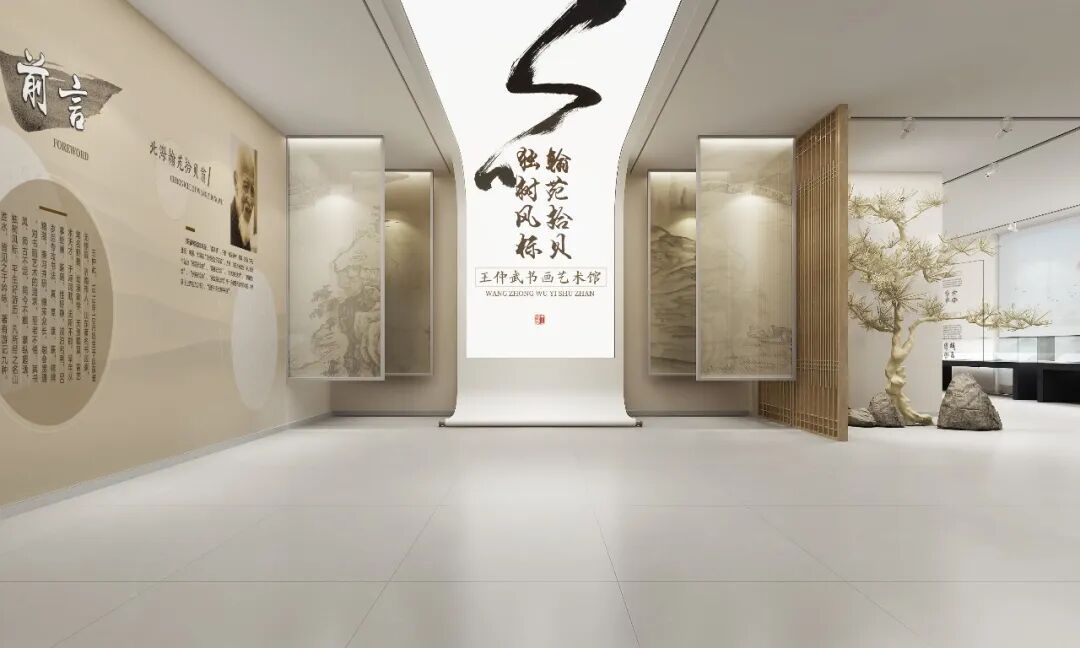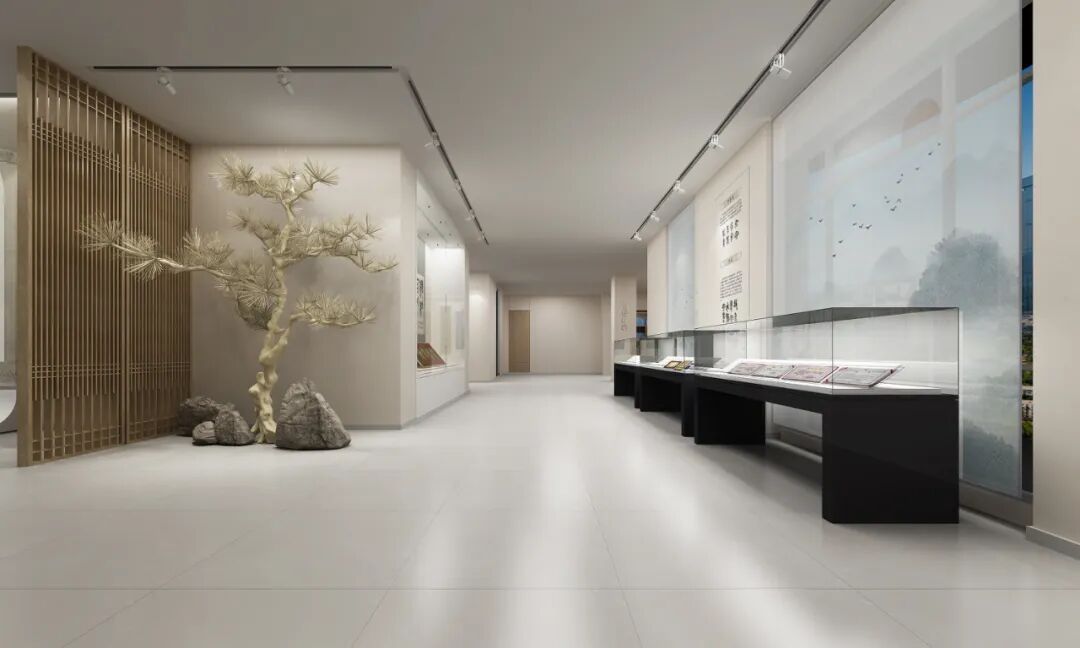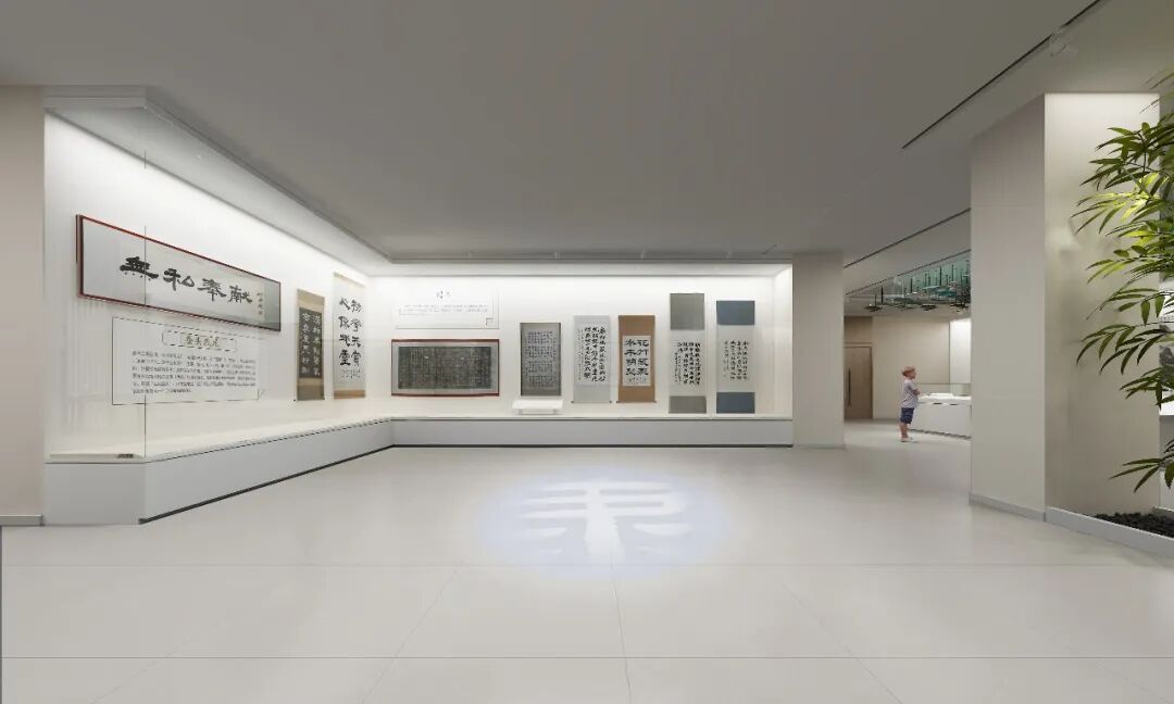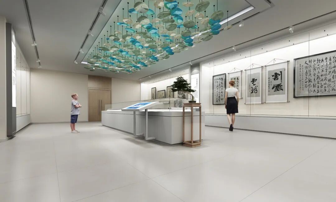 书画艺术馆以王仲武先生“五体千字文”为灵魂,设计团队采用极简留白手法,以深灰墙面衬托展品墨韵。研学室内,仿古书案与数字临摹屏并置,游客可体验篆刻拓印、古籍装订,在互动中感悟书法之美。走廊互动区“穿针引线”“碑帖传拓”等装置,以游戏化设计唤醒传统技艺的当代生命力。