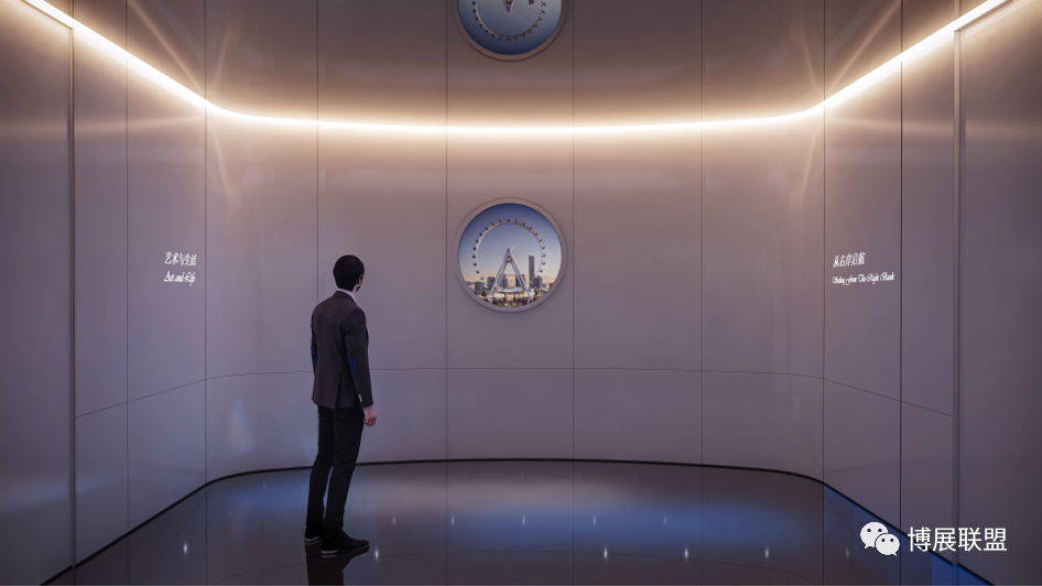 我们以项目独特的地理优势结合未来的业态规划,提出了“艺术与生活,自右岸启航”的展示主题,同时为展厅空间设定了”水-岸-船帆-星空“五个场景意向,并融入丰富的多媒体展示形式,创造了一个激发好奇和审美意向的展示体验空间。