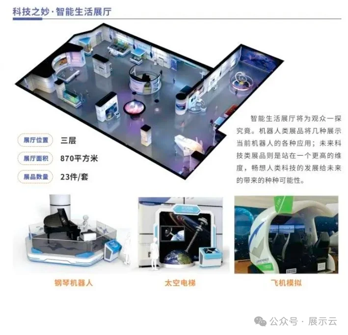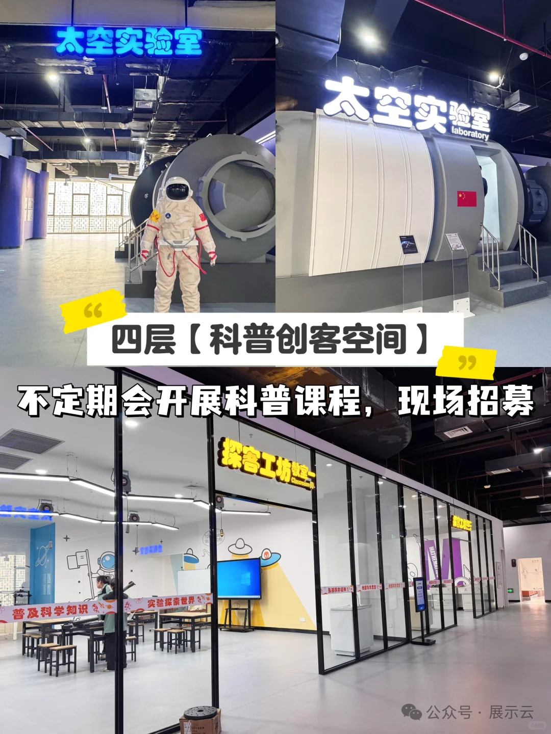 设有太空实验室、探客工坊和虚拟实验室。