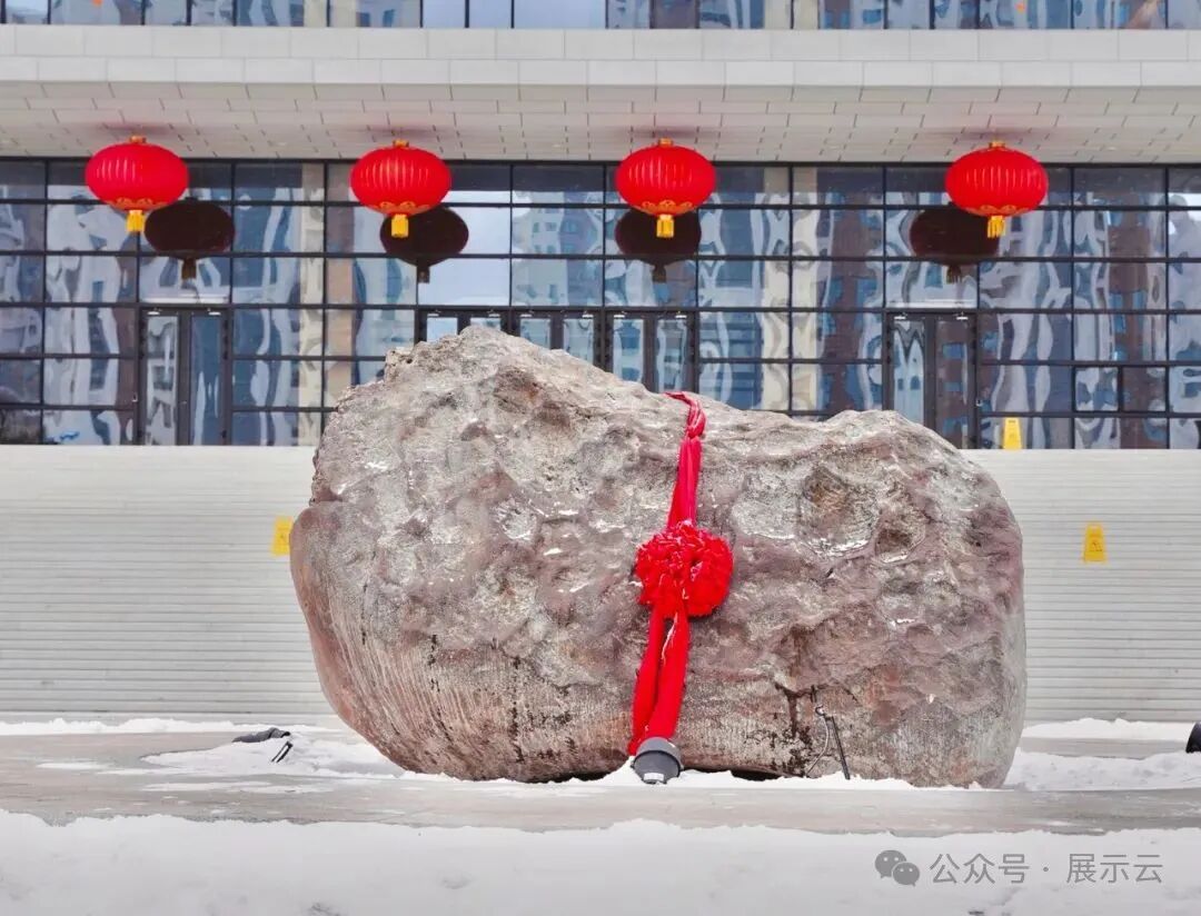 从还未踏进展馆时,我们就已经与天地源疆展厅里的陨石见过面了。被称为世界第三大、亚洲第一大铁陨石的“银骆驼”,静静伫立于展馆门前,这块于 1898 年发现于阿勒泰地区的“大块头”,重达 33 吨,也是镇馆之宝之一。