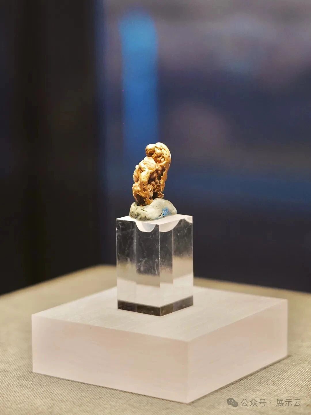造物富疆展厅的非金属矿产展区展示多样新疆石材,文石如蓝塑,沙漠玫瑰自然雕刻,整齐切割与奇形怪状皆有,彰显新疆石材丰富储量。