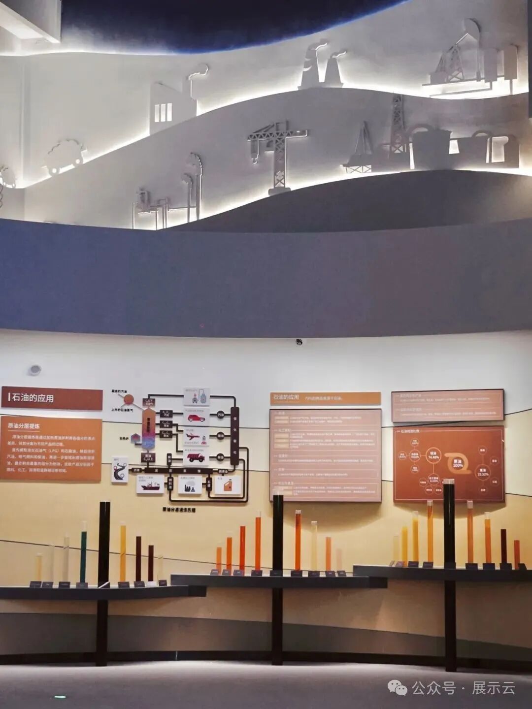 在造物富疆展厅中,最先映入眼帘的是能源矿产展区。以石油生产制造而成的各类石油产品整齐排列,走近模拟场景装置,整个人也就置身于“克拉玛依油田”了。