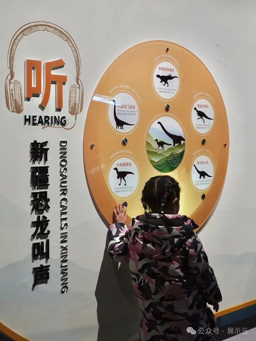 设置在恐龙化石一侧的 AR 体验,只需用屏幕对准恐龙头部,就能一眼分辨出是哪种恐龙。