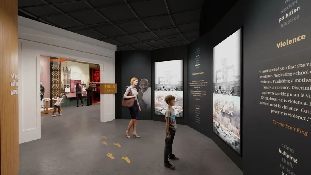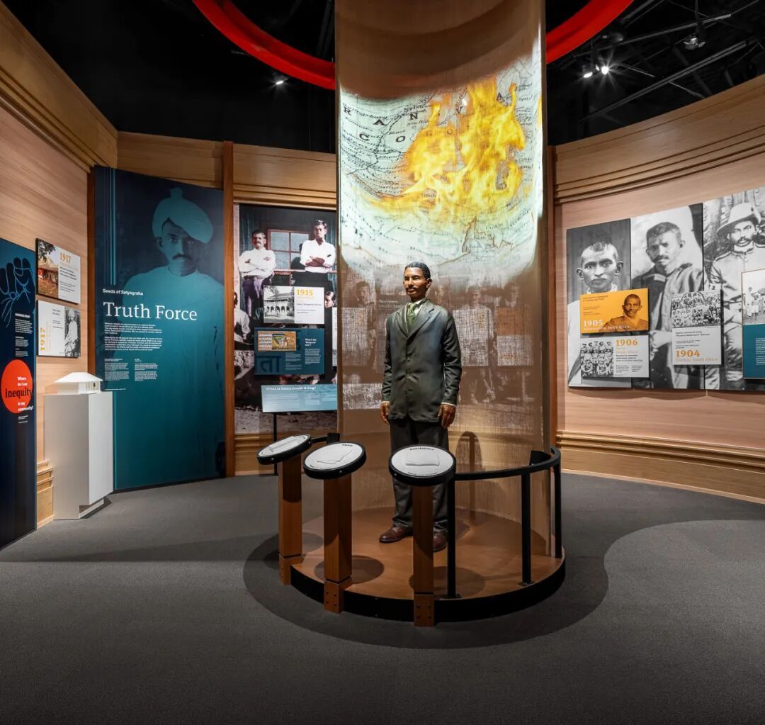 第二部分聚焦全球和平领袖,他们通过非暴力抵抗做出了改变,而一个身临其境的剧院则分享了这些领导人如何受到甘地强大的教导和领导的影响。