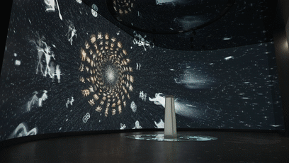 《灵境——未来灵感世界》由“时空穿梭机”、“多感知星球”和“未来灵感城” 构成,以极具创意和交互性的呈现形式创新打造了一个虚实融合的元宇宙空间,从远古时代“秒速”穿越到未来空间,生动展现人类历史文明景观、万物多元的超大陆奇观,以及引发观众无限想象的未来新世界,构建出充满生机、无限丰盈的灵感空间。