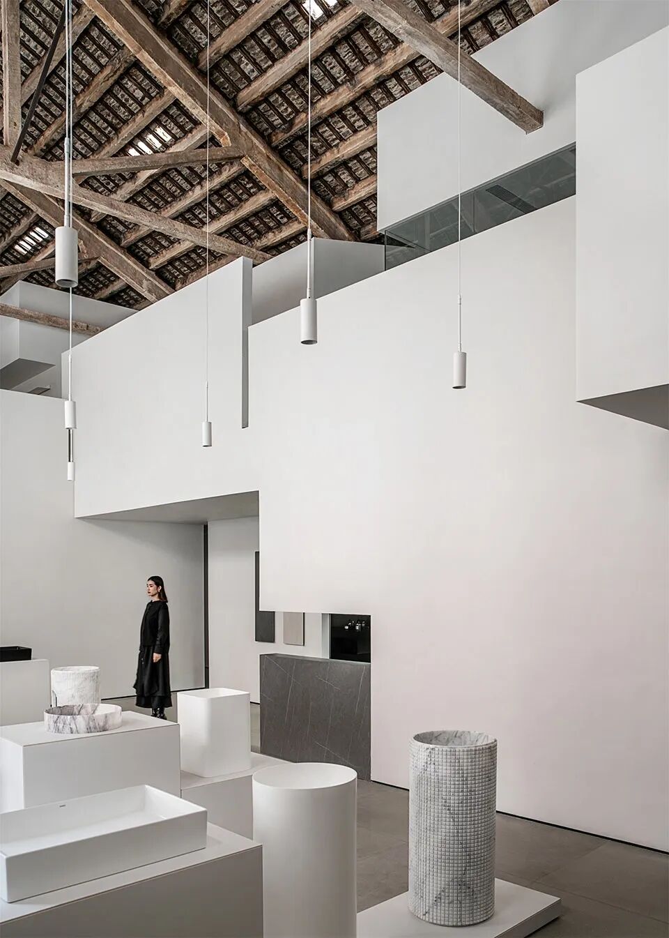 陶瓷素胚般的表面材质,让新构的形态充满了诗意的美感。我们有意识的将新旧材料结合,达到平衡互融,创造出新的精神和生命力。