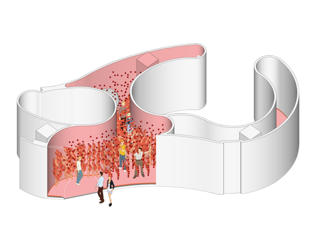 在介入项目的时候,我们得到的场地是一个非常曲面的,碎片化的空间。建筑师当初在设计这个空间的时候,用细胞形态这种比较直接的方式来构建这个展示空间。