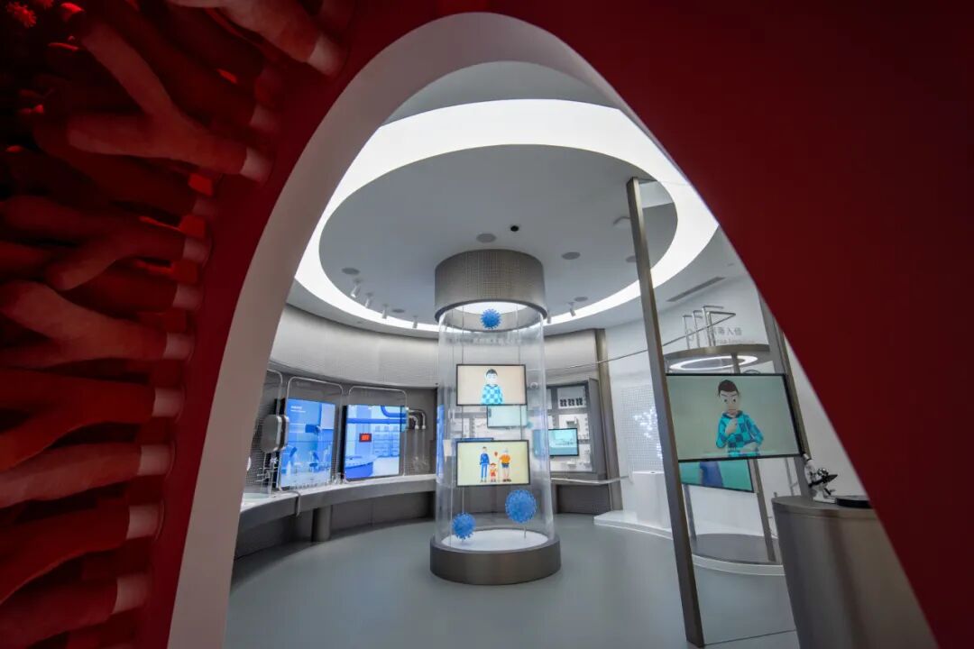 我们在完整的参观动线之外设计了一个隐藏的短动线:一条疫苗隧道可以从第二个展区直接走到了第四个科普展区。