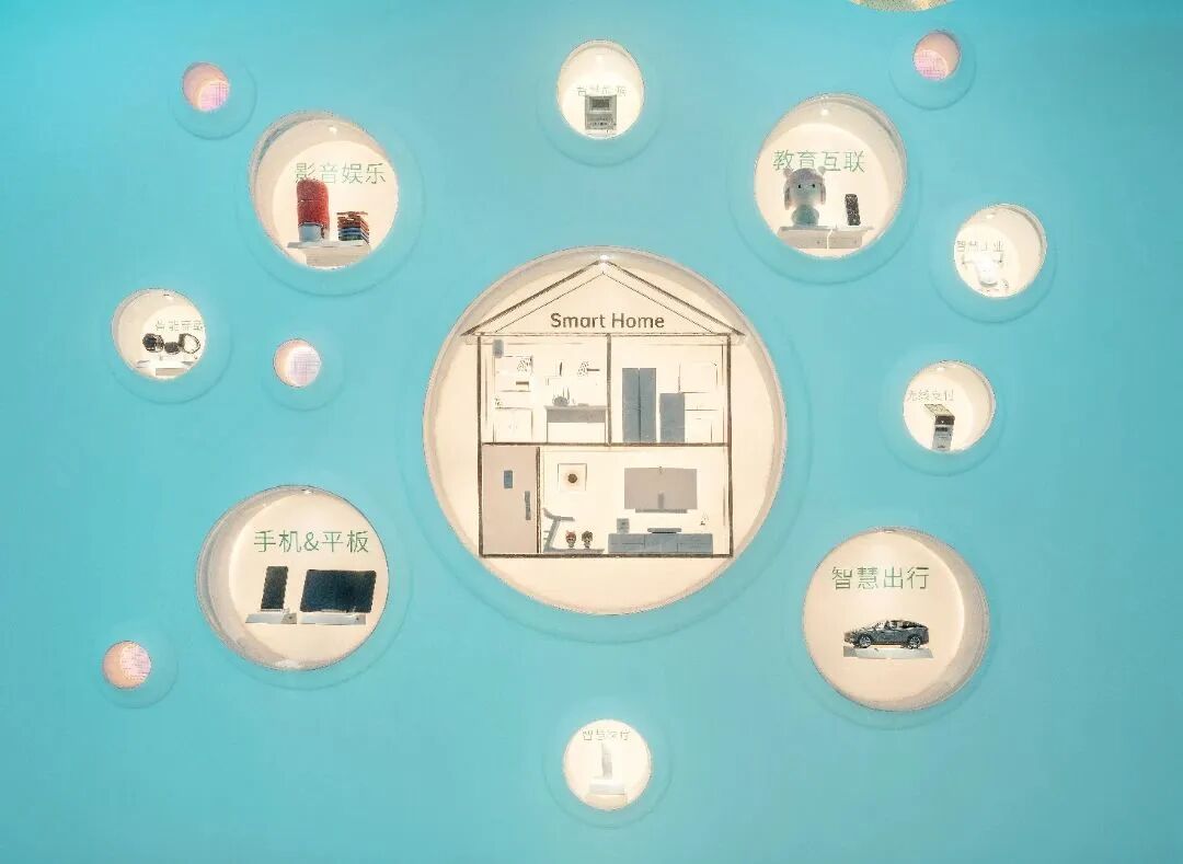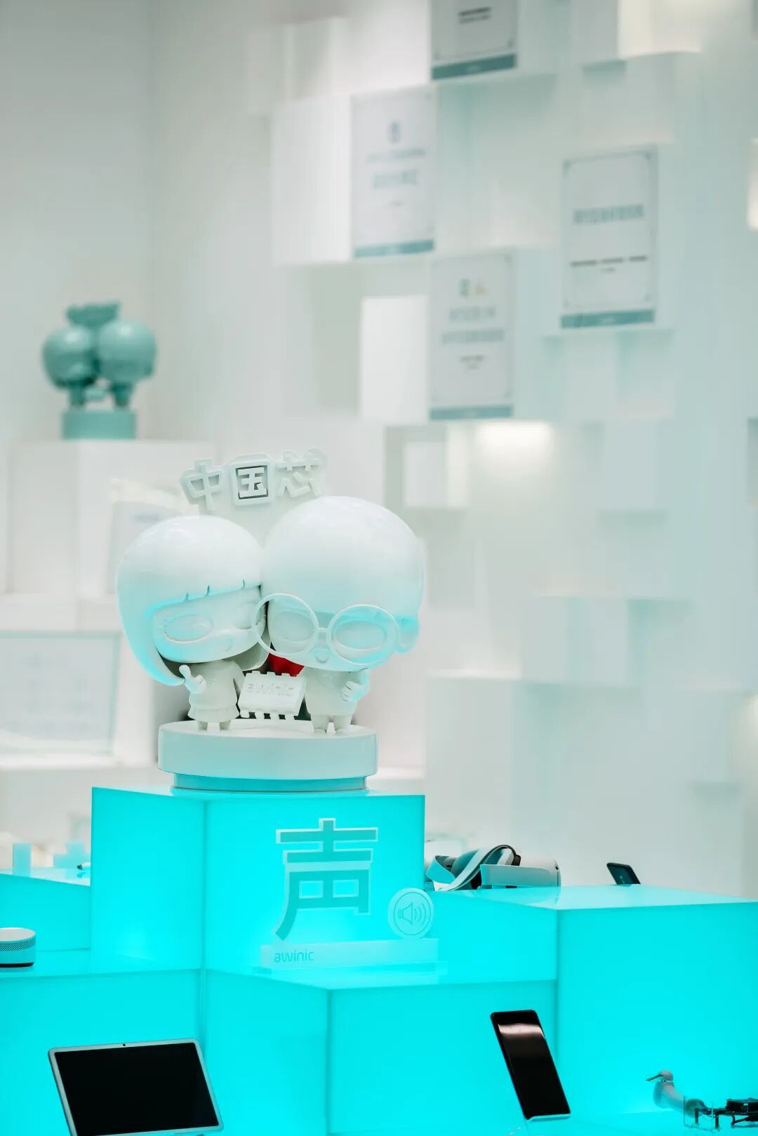 展厅中心以芯片模块、集成电路等元素为设计表达,既有视觉上的传情,又于情绪上瞬间达意,让人持续沐于数字世界的恣意与自由体验之中。