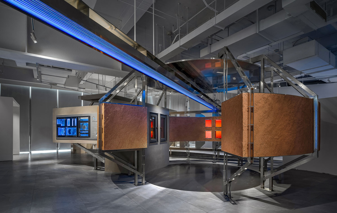 为了改变,我们忽视自然,为了延续,我们回望自然,科技推动的居住的迭代,最终、以人与自然融合作为回归,一块红土装置里的微量元素,却是诱发变化的关键,解析、转译它蓝色的能量链接起源与未来。