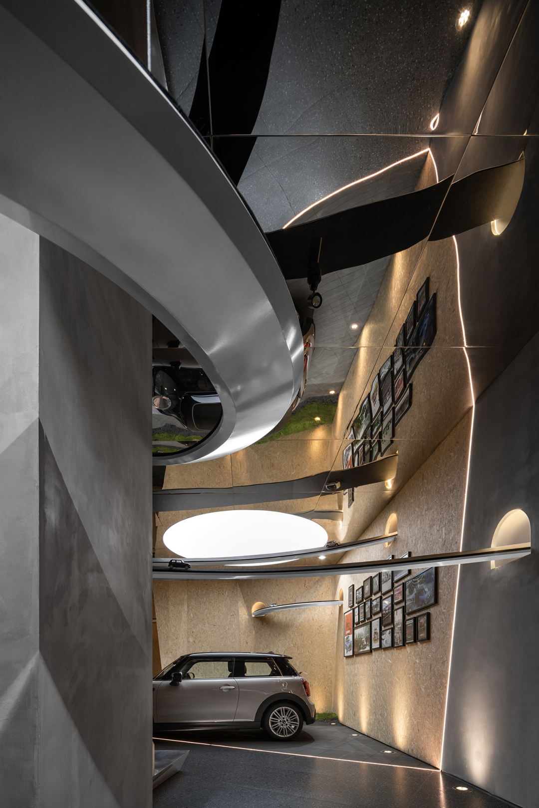 展厅中的自然元素与设计构造相互交融,为空间注入了亲和友善的氛围,营造出更加自然舒适的场域环境。MINI品牌以“城市展厅”的定位,打造出一个不仅仅是商业展示空间,更是情感链接的场所,让人们在与展厅对话的过程中深入了解品牌的精神理念。