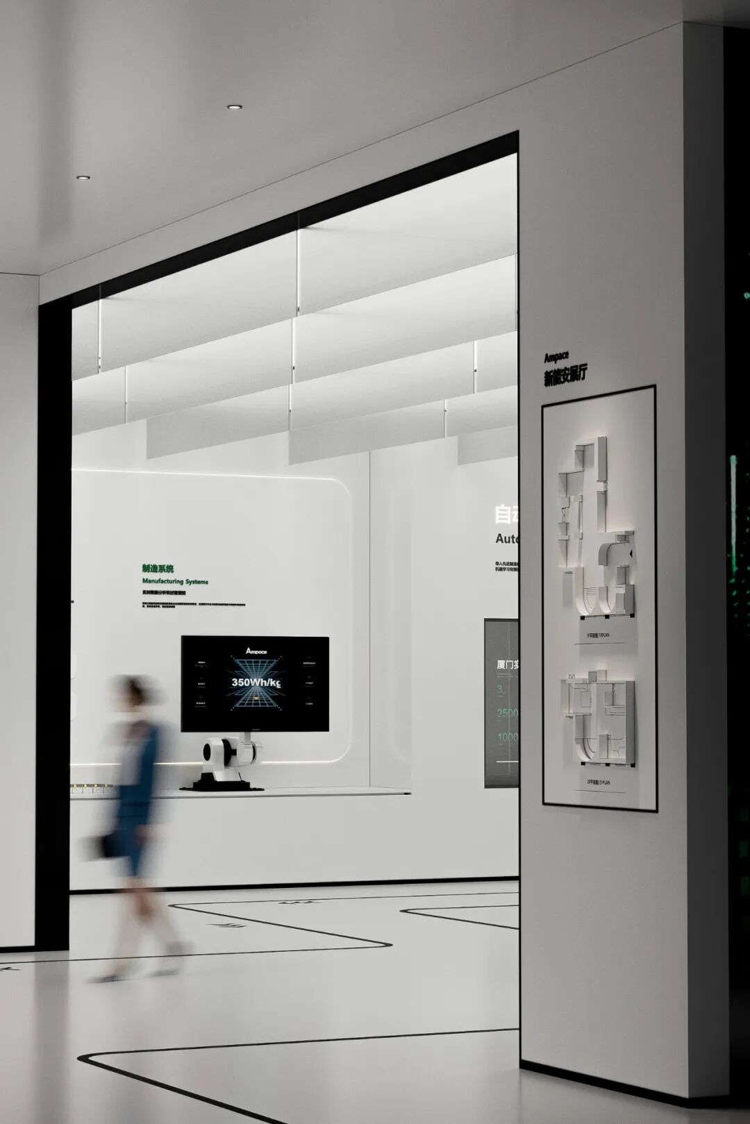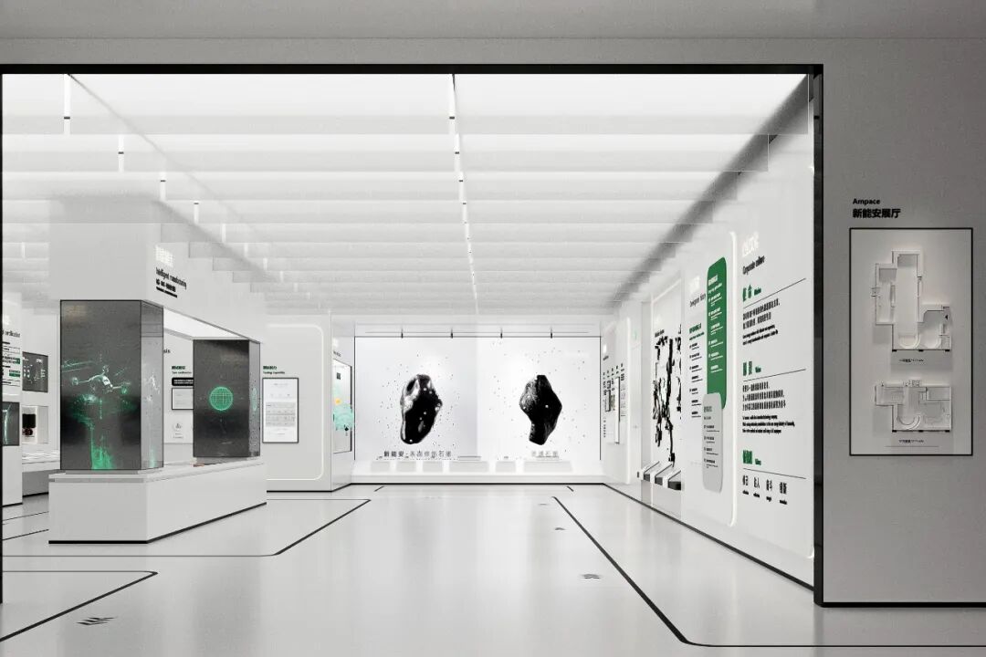 The core of this exhibition hall design project is the creation of a "full-scenario green energy ecosystem." The hall is spread across two floors, covering a total area of 770 square meters. It primarily showcases Ampace technological innovations and development history in the green energy sector. The design not only serves the needs of brand promotion, strength demonstration, and business collaboration but also, through a fresh exhibition concept, creates a platform that inspires deep reflection and fosters dialogue and cooperation.