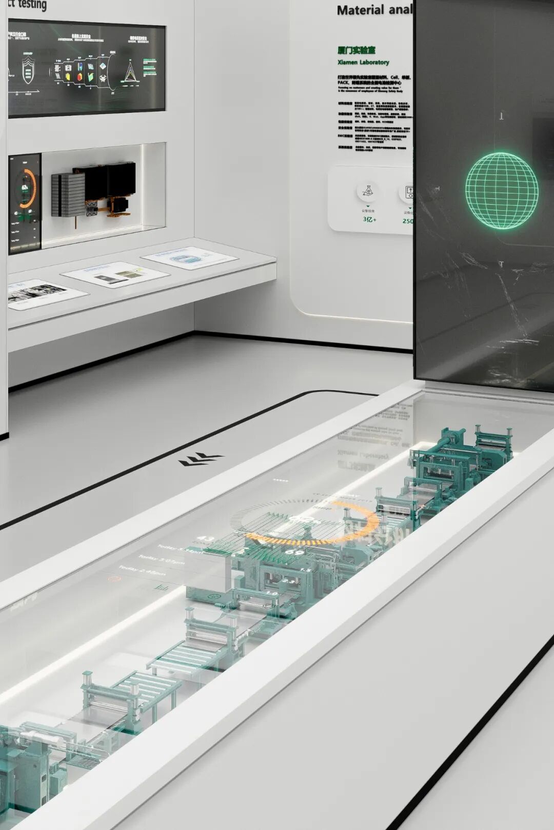 In the overall design of the exhibition hall, space is no longer just a simple display platform; it carries the company's values and future strategies. Every exhibit and every scene is thoughtfully integrated with elements of storytelling. From the birth of the battery, to the acceleration of the energy revolution, and finally to the vision of a green ecological future, the layout of the exhibition hall closely follows this theme, guiding visitors step by step to explore the profound significance of new energy.