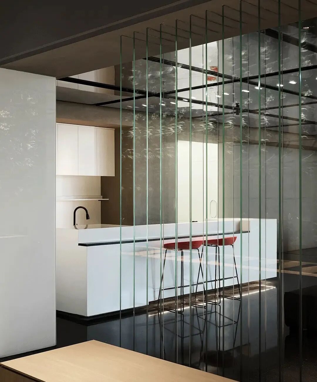 局促而暗黑化空间的引导和逐步打开的室内形态,是进一步体验的重点。