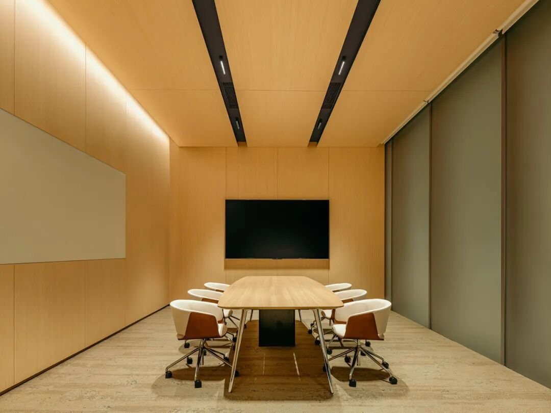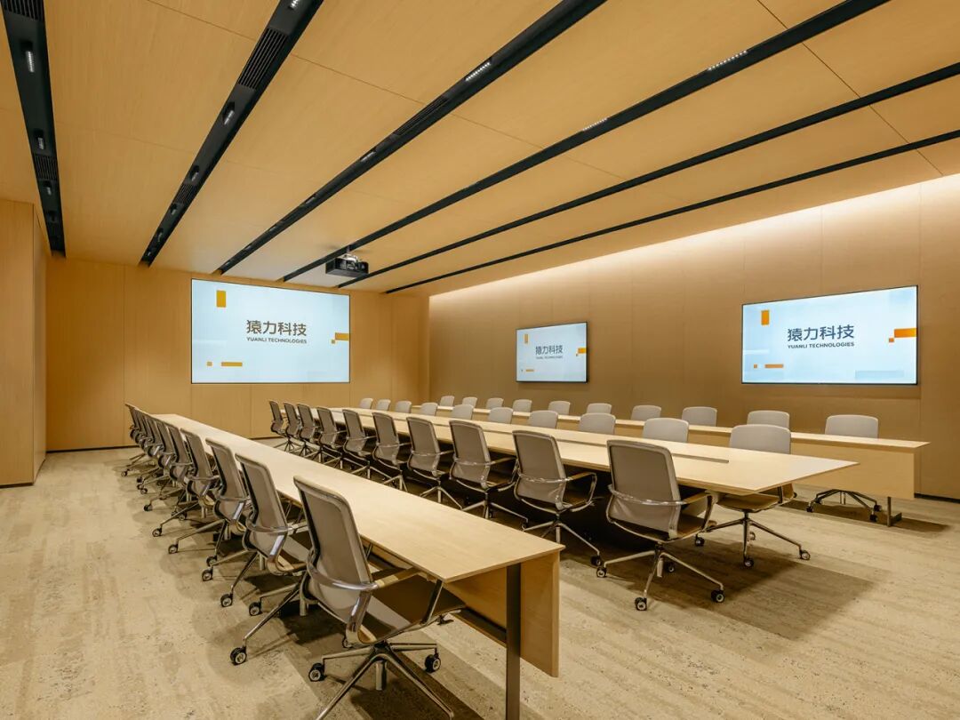 会议室,不仅展示着猿力科技形象,更是沟通交流的重要场所。在会议室装修过程中,PPCG着重考虑了隔音和照明问题,通过准确计算和巧妙设计,以确保良好的会议环境。