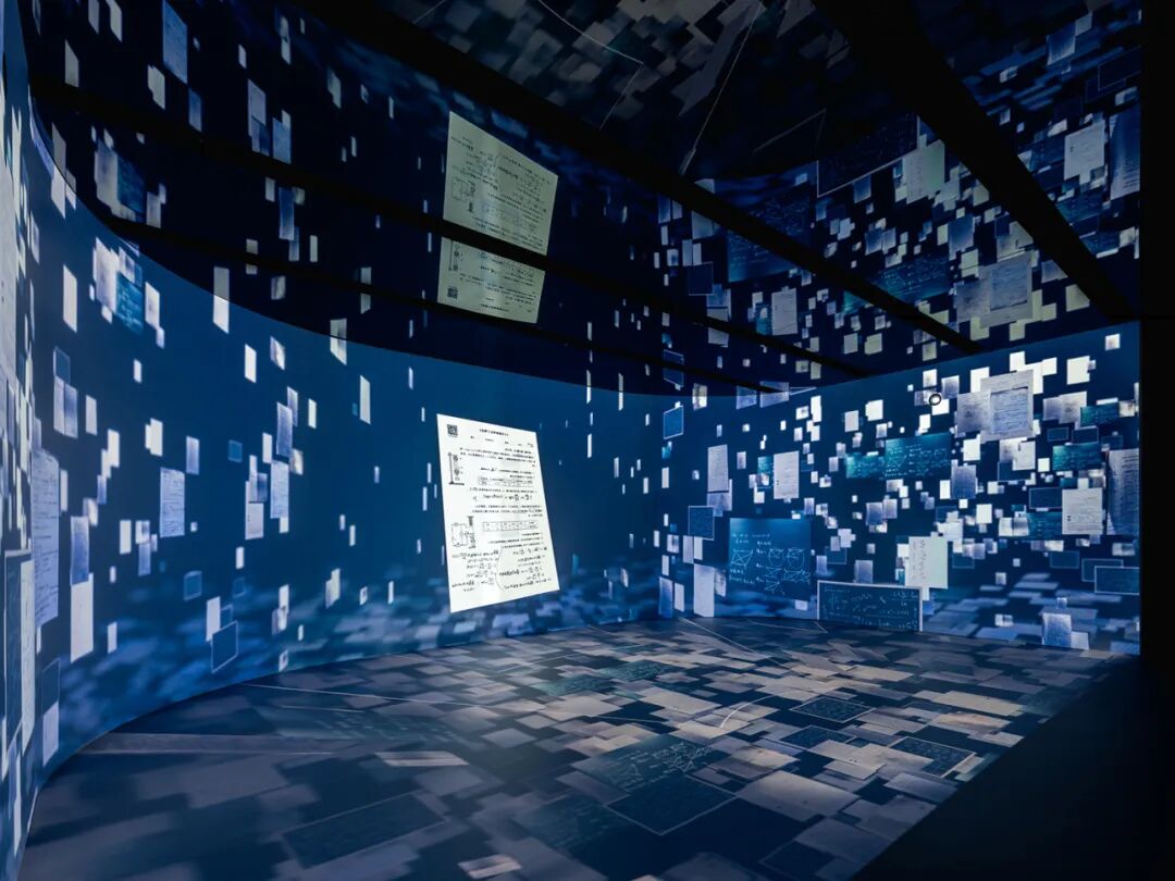 拥有数量超多多媒体设备的猿力科技展厅, “飞象星图”光影空间内,多台高清激光投影机在墙面与地面共同构建出一个独立的多媒体梦幻矩阵。音效系统通过精密的声音定位技术,给予耳语般亲切的“启迪”。当参观者伸出手,“触摸”遥远的星光时,代表知识图谱上的一个个节点将相互交织延展,如同知识结构中,概念之间的深刻联系。一旦关键知识点被触动,所有的光线向其汇聚、爆发。那一刻,关键知识点的内容徐徐展开,呈现知识之美。