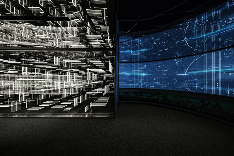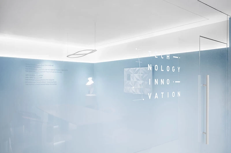 通过进入具有强烈仪式感的入口,参观者在狭窄的“黑夜”空间中沉浸式地体验,激发出他们对下一个展厅的强烈期待。在这个空间中,艺术与科技的融合达到了完美的境界,呈现出品牌的美好理念和象征性艺术品,彰显出品牌的独特魅力。