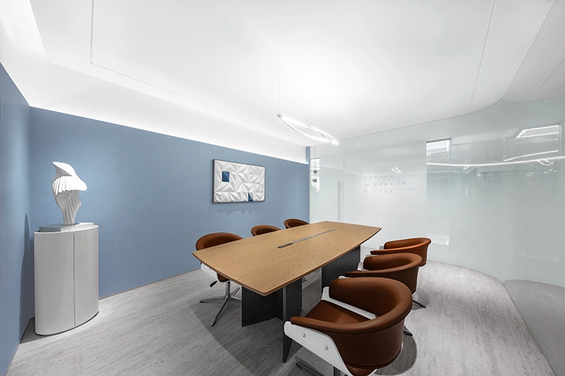 软装设计在项目中扮演了重要的角色,设计师以苏州河为主题,巧妙地运用长短线条勾勒出蜿蜒曲折的河流图案,通过蓝色的点缀,使整个空间变得更为生动,呈现出五彩斑斓的城市景象。家居饰品的点缀更是让整个空间充满了亲和和温馨的氛围。