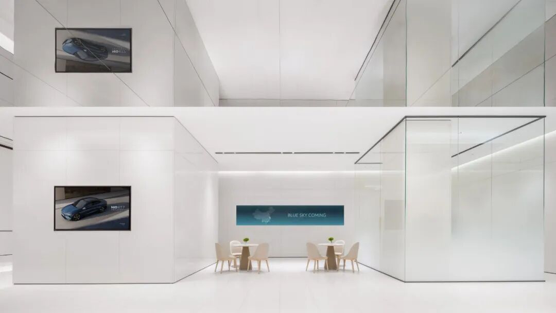 Silver-white modern textured materials set a refined tone, and the spatial texture is at the same frequency as the car, which also makes the image of NIO, which is full of technology, stand out, clean and stylish, full of high-end sense.