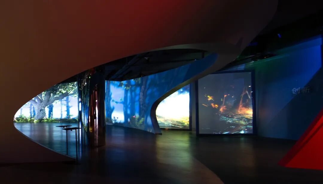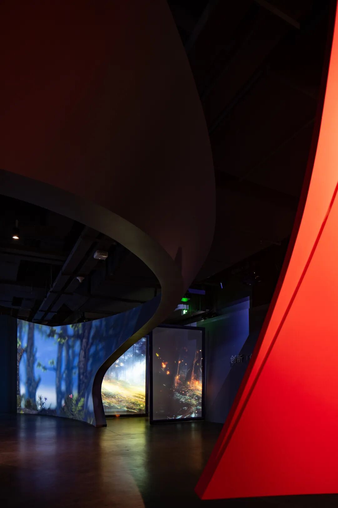展厅的尾声是一段较为轻松的世界科技园区漫步之旅,梦幻的星光森林在空间的收尾处再次点题。