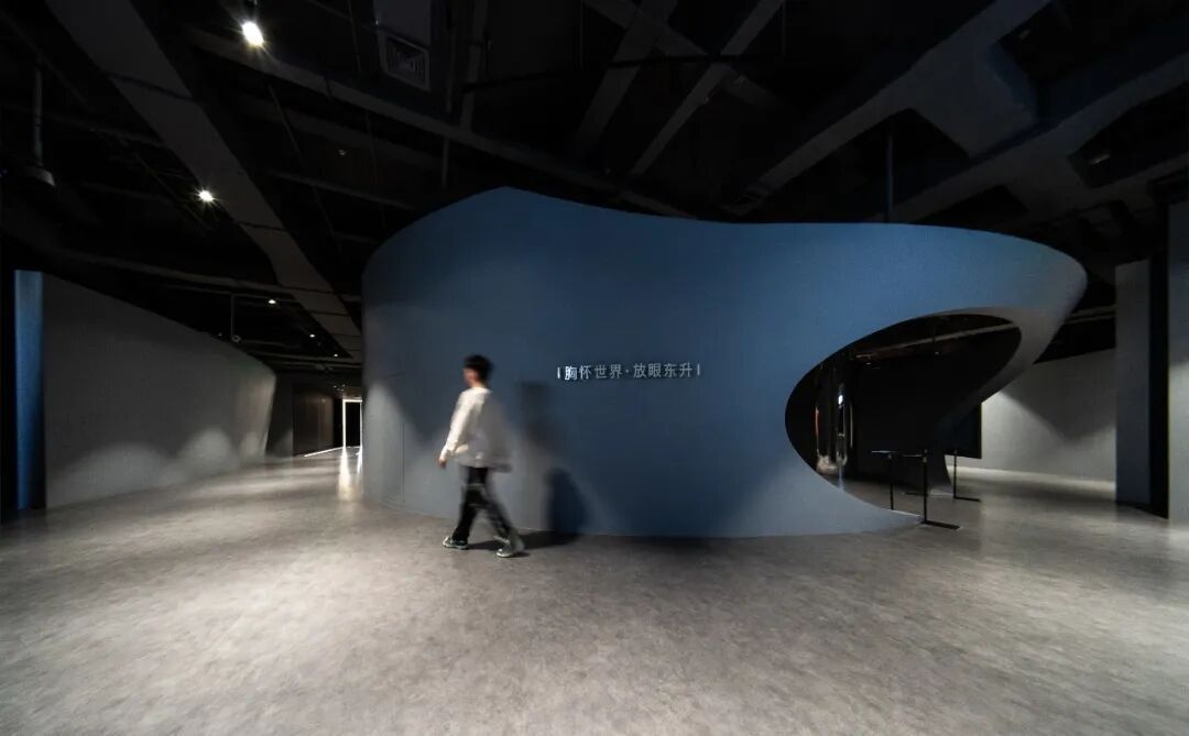 展厅的出口是一段笔直的通道。寓意着奋斗者们不断探索,挑战未知,勇往直前,开启科技园区的新篇章。