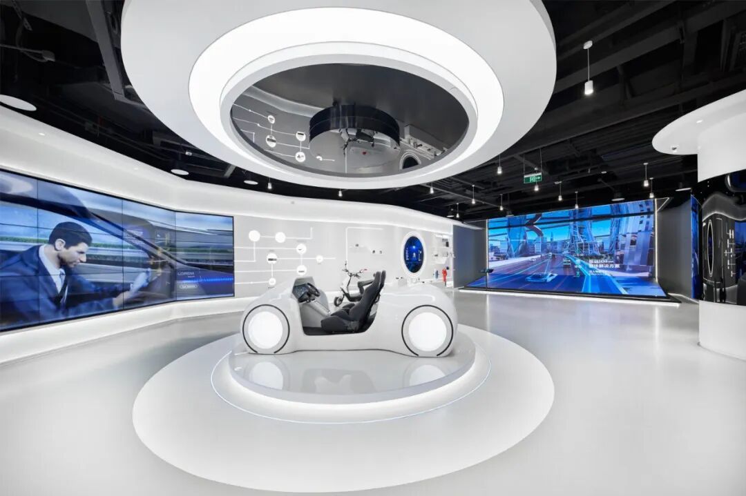 Under the condition that the main building structure remains unchanged, through spatial reorganization, several spatial blocks are connected in series and flow. The exhibition hall is planned to be divided into seven areas, namely: enterprise introduction area, product display area, terminal display area, intelligent driving area, intelligent living area, intelligent industrial area and intelligent agricultural area. We extract the development profile and technological characteristics of the brand itself, build a technology exhibition hall that aggregates influence in the industry, and build a high-end platform for interaction, interaction and experience. The overall futuristic and technological lines create an immersive experience. The designer strengthens the streamlined surface properties in the shape, so that the resulting fluidity guides the entire visual route.