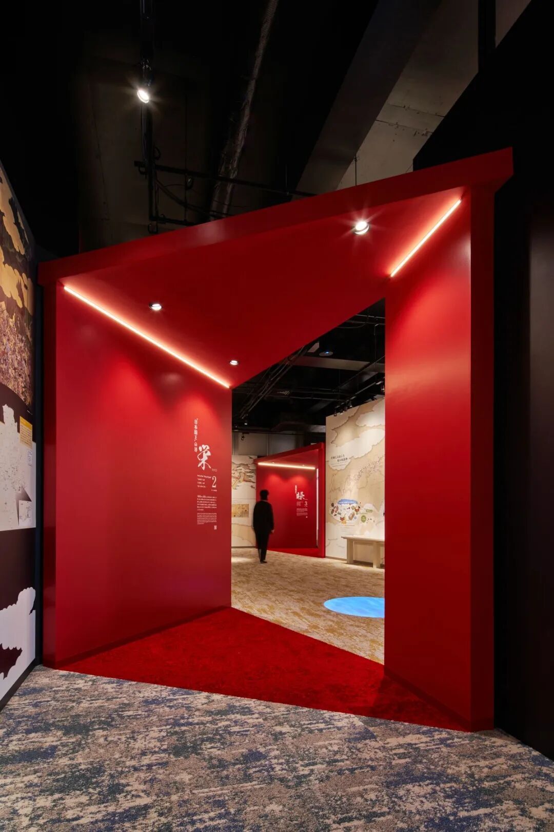 进入博物馆的接待大厅,首先映入眼帘的是北前船型的纸灯装饰,它们悬浮于头顶,营造出一种温暖而欢迎的氛围。脚下则是一幅1868年的“兵库津”鸟瞰图,让游客在历史的脉络中开始他们的探索之旅。