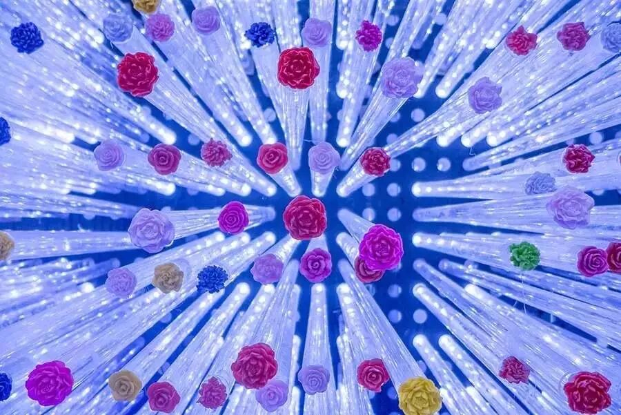 科学篇中运用4D影像、动漫展示、多媒体互动等先进技术,深入浅出地讲述了月季品种、栽培等相关知识。一座独立的直径10米的圆型空间,墙面及屋顶镶嵌了3万多根亚克力透明发光柱,柱头再嵌有3万余种颜色、花瓣各异的品种月季花模型。