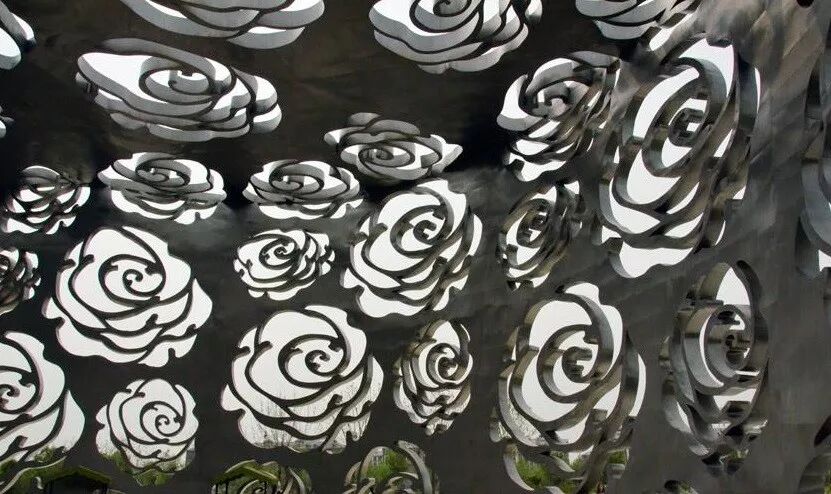 - 北京月季博物馆设计:不锈钢镂空花幕墙,打造梦幻光影“第三空间”