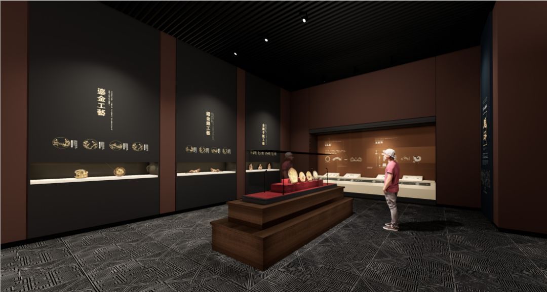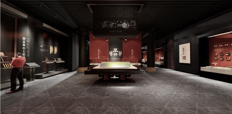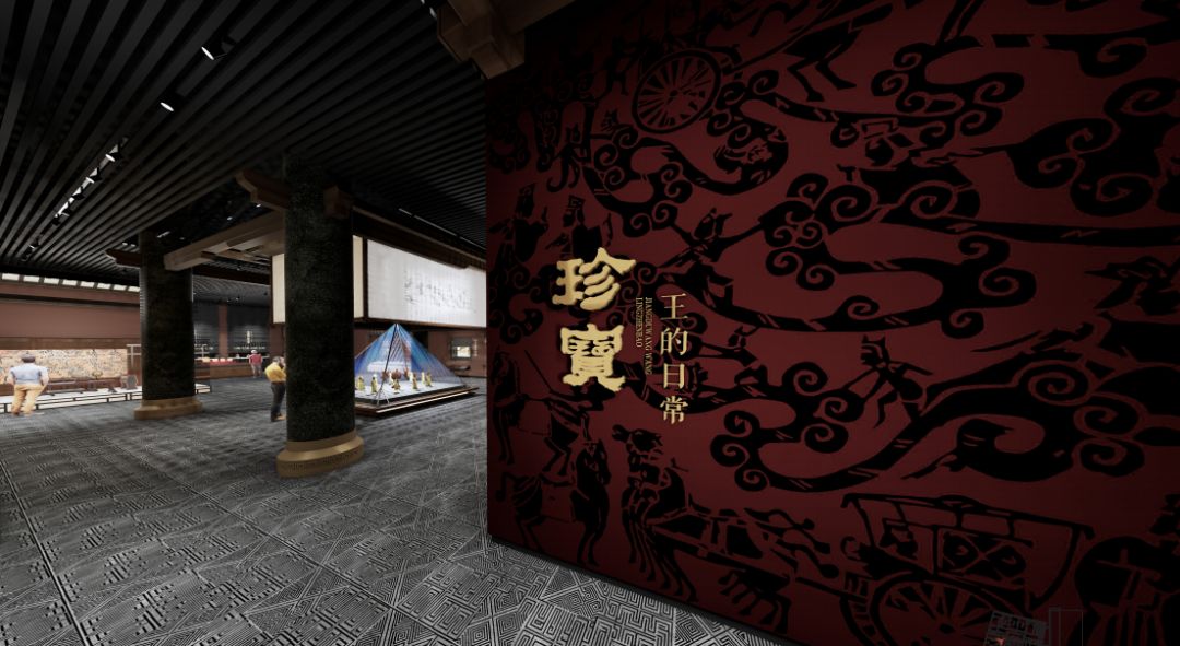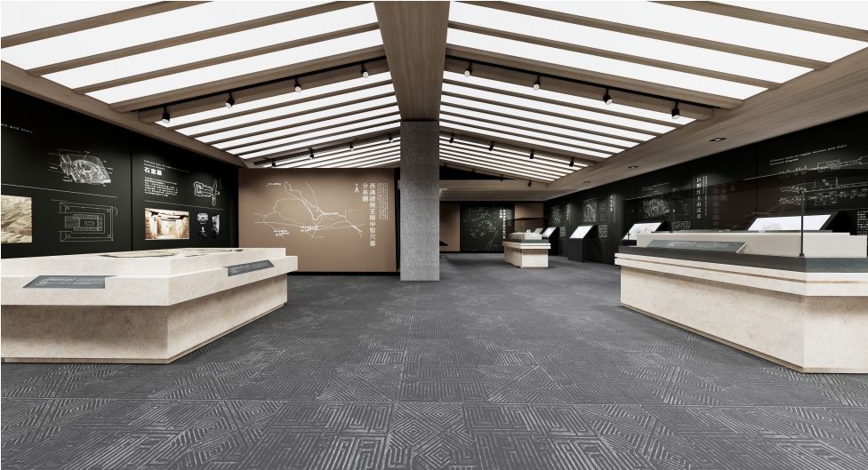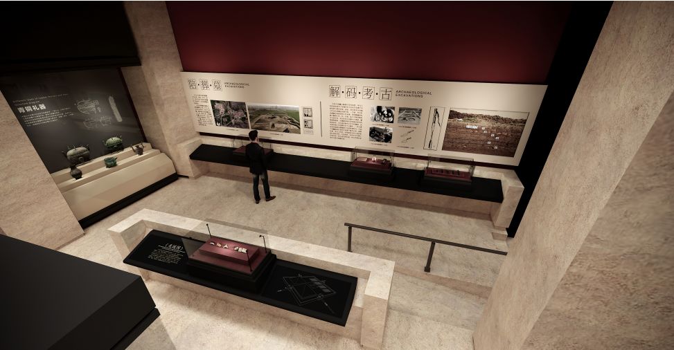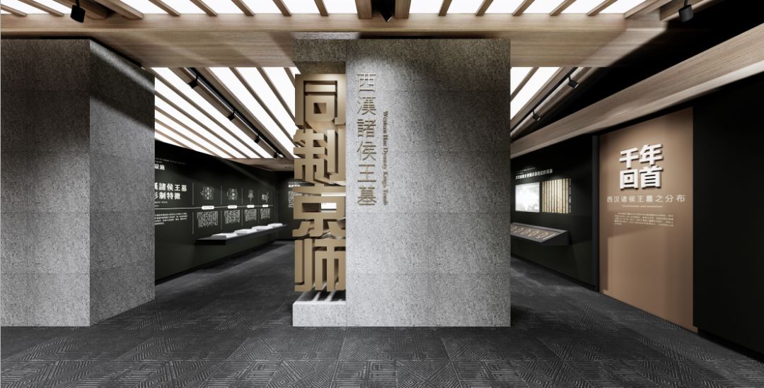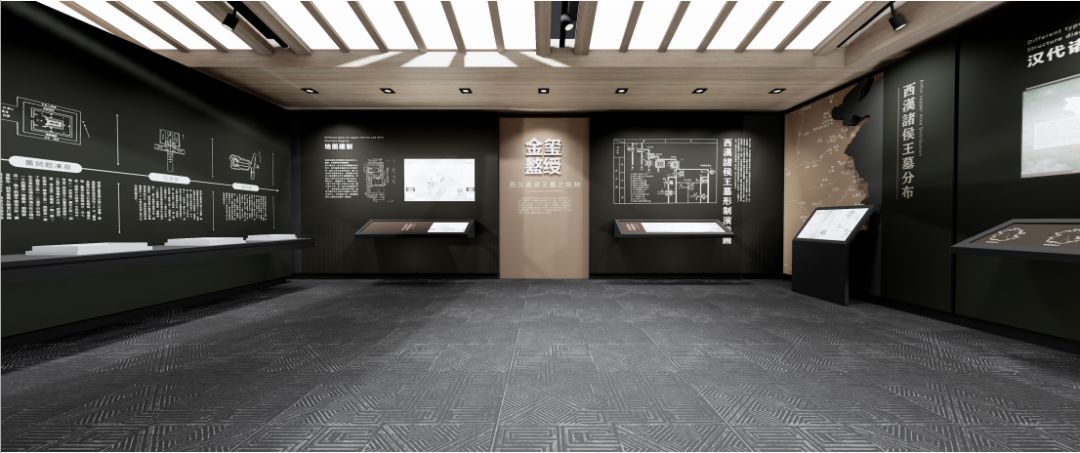 以考古挖掘事件为主题,展示大云山汉墓挖掘过程中的故事,重点展示金缕玉衣和黄肠题凑,空间肃穆安静,将考古挖掘的细节全面展示在受众面前。