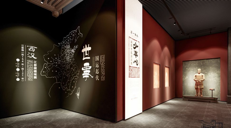 大云山汉墓博物馆陈列由六个部分组成,分为“江都王·王的日常”、“江都国·国运起伏”、“同制京师——西汉诸侯王墓”、“东阳旧事”、“旧年照眼青铜镜——盱眙铜镜展”、“征西车马羽书迟——盱眙车马兵器展”。我们对展陈空间进行数以百计的节点刻画,呈现出一种风范的继承,一种精神的指引,恍若翻开一页页不朽的诗章。