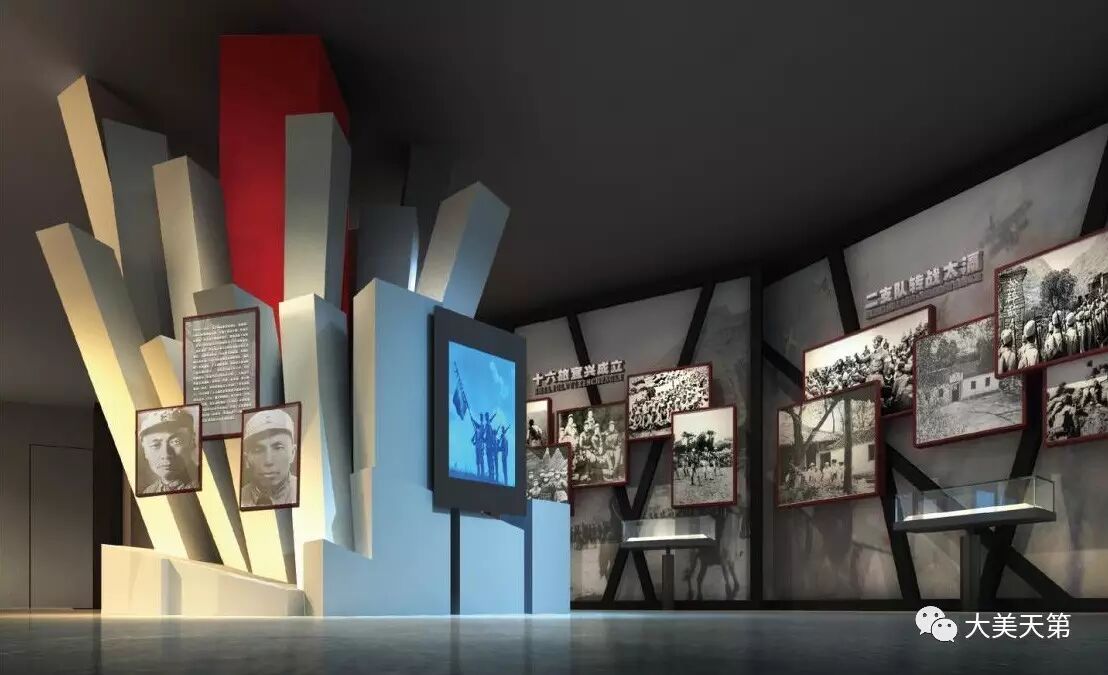 在展陈形式上,大美以历史文物资料为核心,把握历史节点,通过战斗场景复原、多媒体声光电技术、浮雕墙、人物雕塑等手法,生动还原历史,突出思想性、注重真实性、体现艺术性。