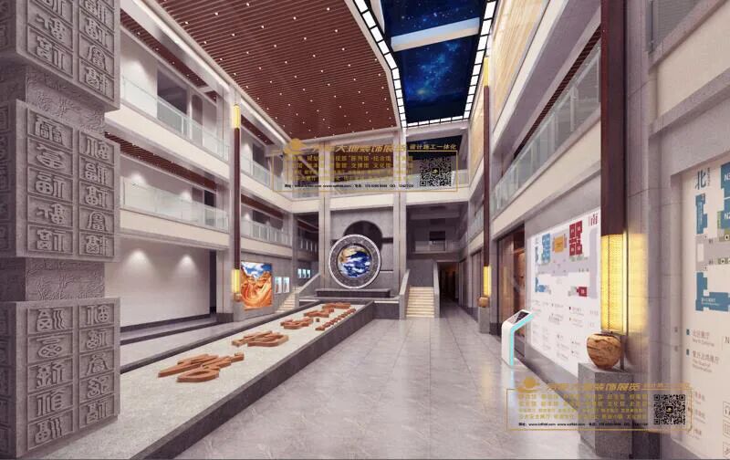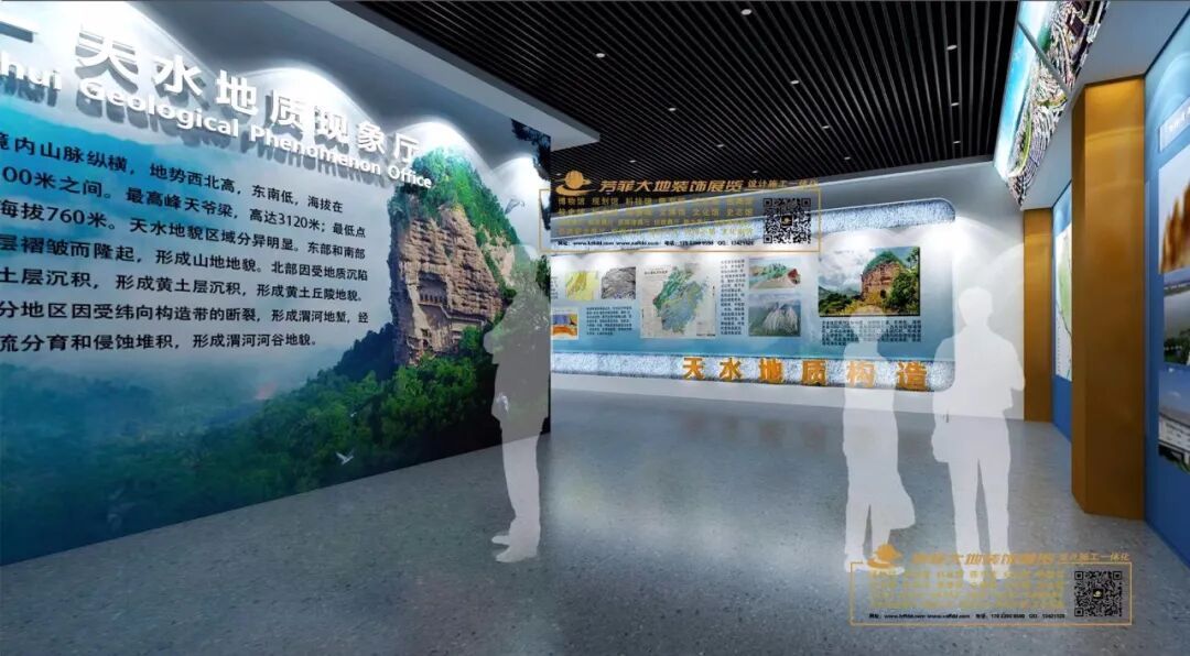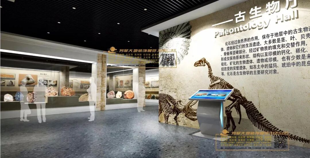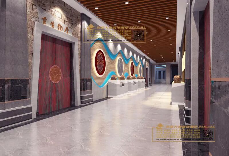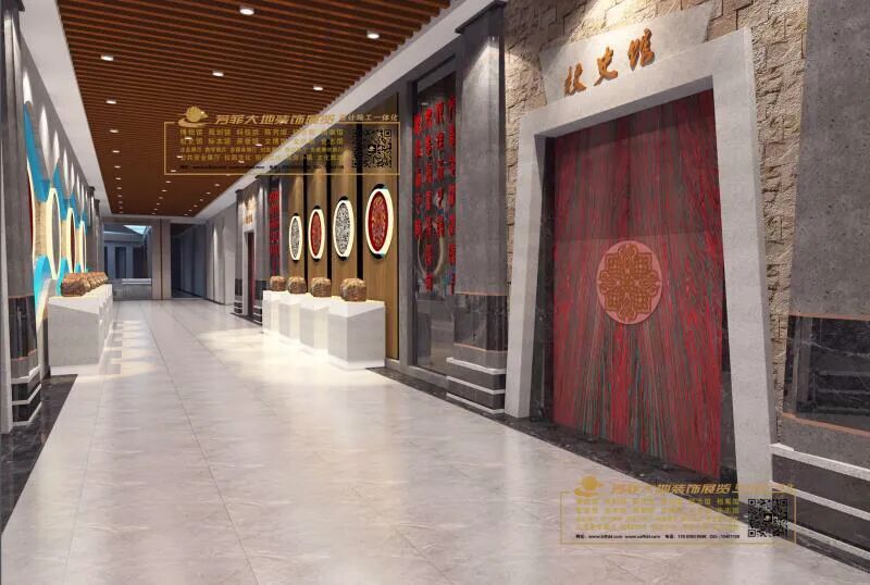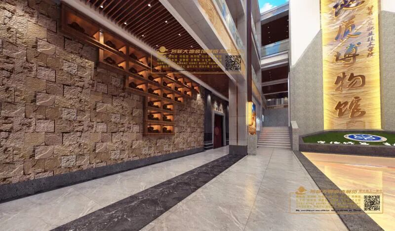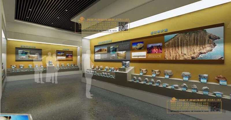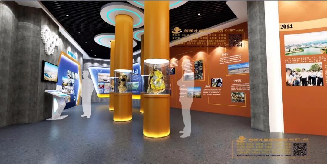 兰州芳菲大地装饰展览公司自设计开始,不断踏勘现场,查阅资料,走访请教高校和地矿部门专家学者,学习吸收专业领域指导意见,历时半年多,将广博庞杂的知识点不断归纳提炼,统筹策划,最终形成了科学严谨的布展大纲。经过多名设计师集思广益、夜以继日的辛勤工作和创意设计,一座专精大气、简博精微的彩陶创意产业园及地质博物馆实训基地以沉稳内敛、科学实用的个性化特点终于浮出水面,华丽亮相。
