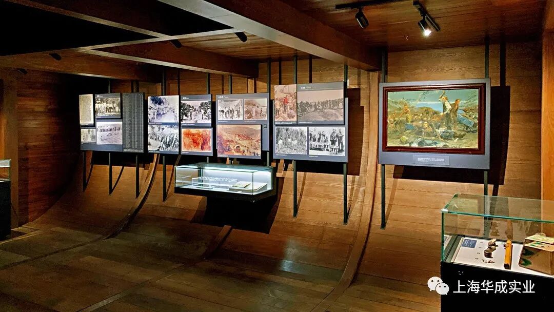 整个展厅中根据不同展览内容,营造各式富有特色的场景,并根据现场空间条件,做出具有针对性的设计调整。我们在原有现场基础上,从材质、形式、现场氛围做进一步提升,并结合大量多媒体运用,使观众看后能够有更真实的沉浸式感受。