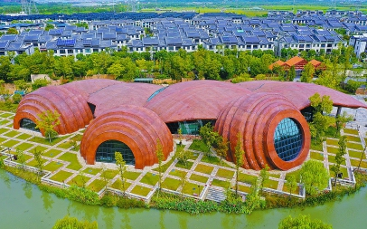 广富林考古遗址展示馆坐落在松江广富林文化遗址核心保护区北面,其建筑外形由3个错落有致的“陶罐”和5片“陶片”组成,总建筑面积约为12300平方米,内部展示空间近3000平方米。展馆内设正厅和“文明之源”“城市之光”“历史之脉”三个独立展厅。