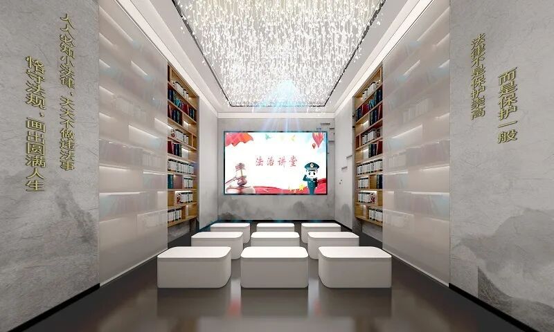 澳达承接了该项目的设计施工一体化工程,整个展馆分为法治发展史、法润郎溪、多元空间、尾厅四个展区,集法治思想传播、法律知识宣传、法治成果展播、VR互动体验为一体。场馆设计精巧、建设精细,沉浸式、体验式互动功能突出,融合了现代科技与法治文化,成为普法工作的新载体,集中展示了郎溪县法治建设成果。