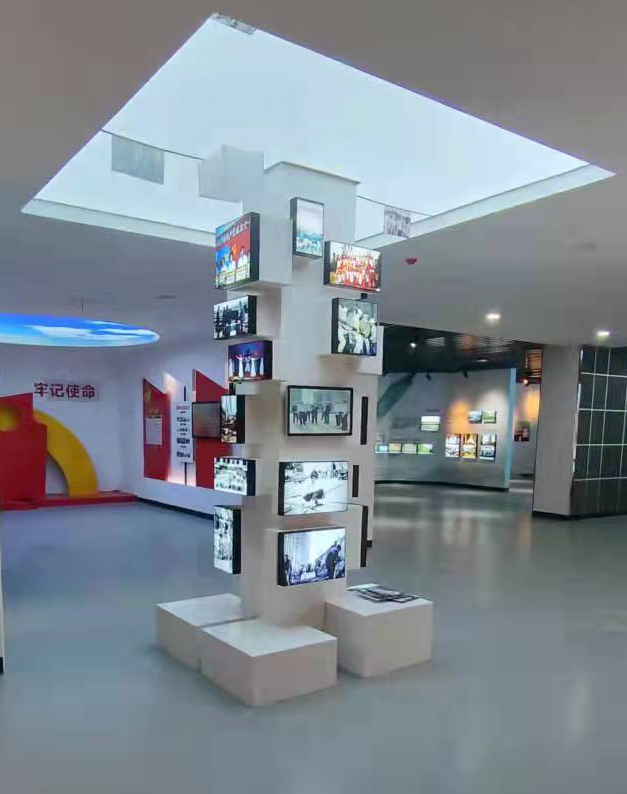 集中展示鲁南院历史概况、发展历程与荣誉成果。我司创意设计像素块丰碑柱,象征一代代鲁南人以奋斗铸就时代丰碑。