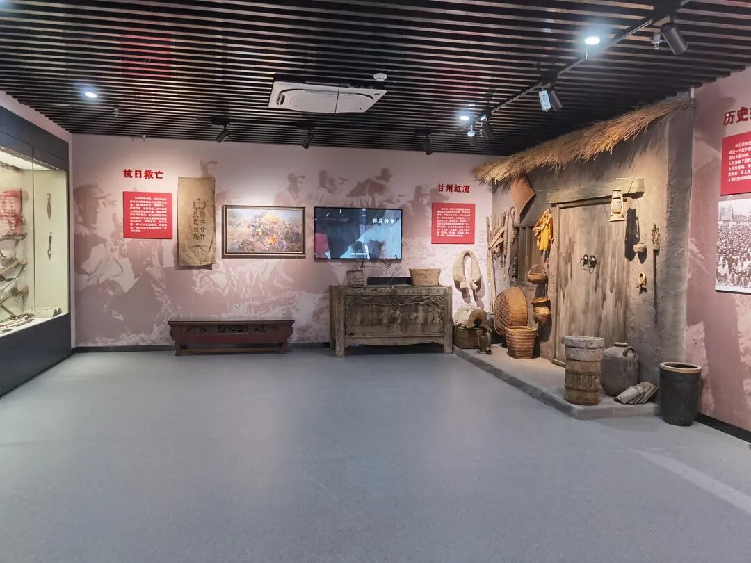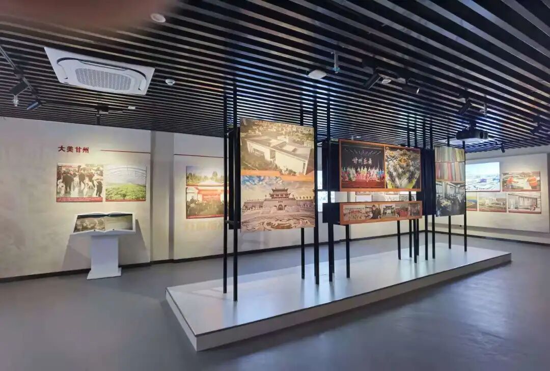 展馆深度融合张掖革命历史资源,**综合运用图文展板、革命文物、主题雕塑、装置艺术、场景复原、声光电多媒体**等现代展陈手段,多维度、全景式阐释甘州红色文化内涵。