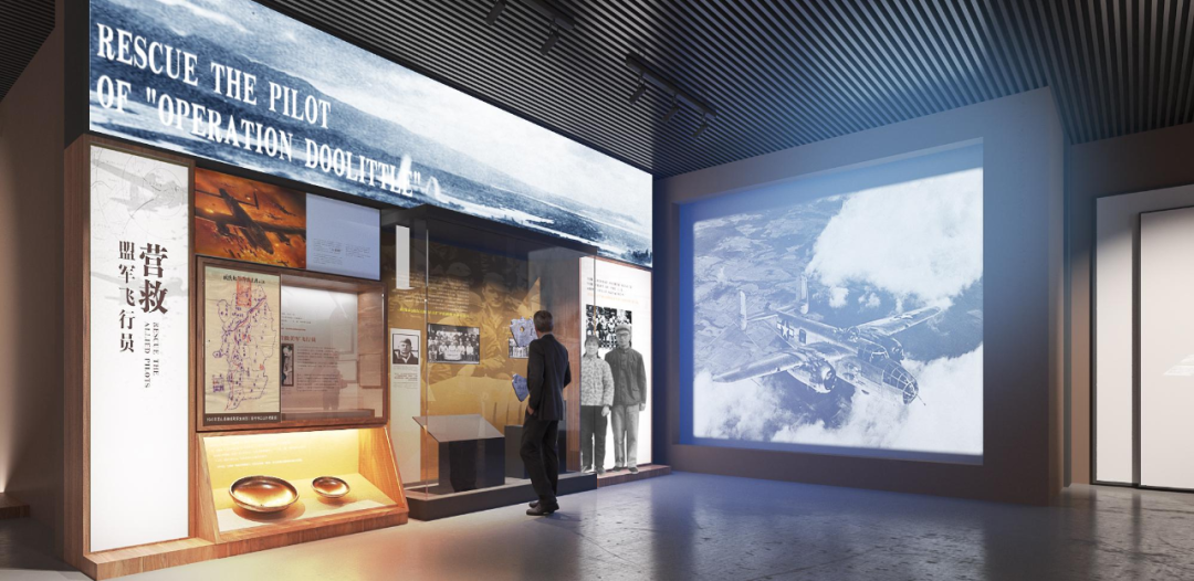 以沃土棕为主色调,打破平铺直叙的展陈方式,以营救盟军飞行员创意影幕、红军挺进师艺术群雕与实物阵列解读江山不朽的红色档案。