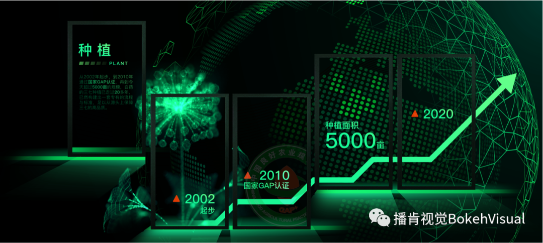 伴随屏幕阵列变化,影像也随之变化。拟态三七,会将观众带入一个数字三七世界。可视化的流程,让演示瞬间变得生动起来……