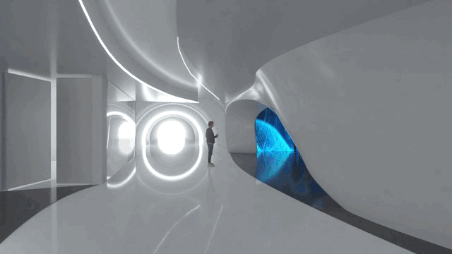 墙面设等高线浅浮雕,作为整个互动投影的载体。
