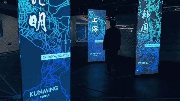 走进展馆,一眼就能望见这个展项,立刻会被这些移动的屏幕所吸引。
