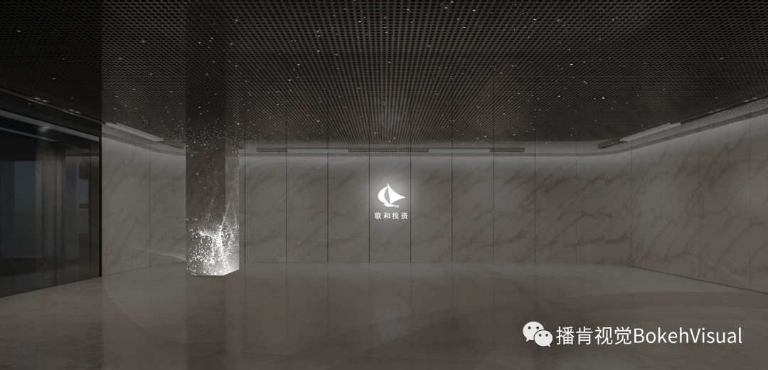 立柱、顶部灯点与墙面联动,共同诠释“星火”这一主题意象,浓缩呈现联和的使命与价值。